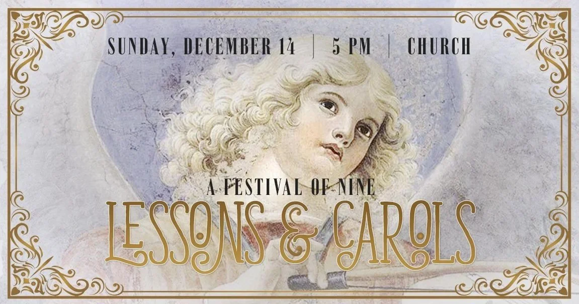 You are invited to St. John’s annual festival service of Lessons and Carols, a celebration of the music of Advent and Christmas. St. John’s choir and ensemble will sing music of Praetorius and Rutter, while the assembly sings the great carols of the season. Arrive early at 4:30 pm for a pre-service recital by the Coppell Wind Symphony Trombone Sextet. An elegant reception follows in the Parish Hall.